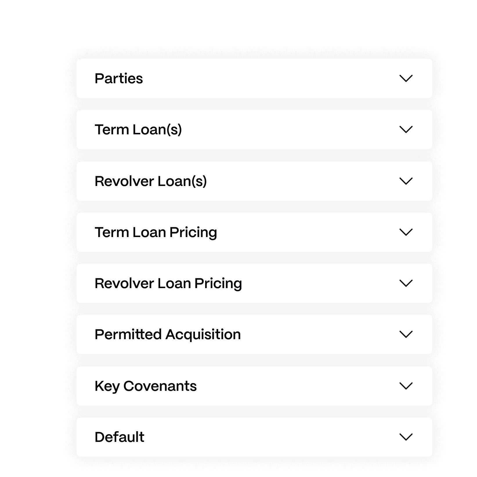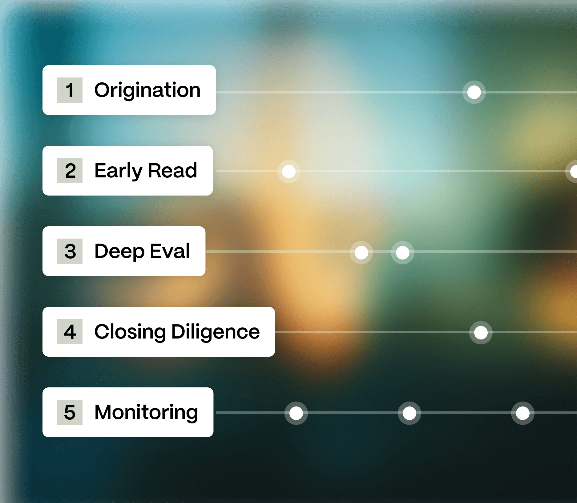 We target the most complex, intractable parts of enterprise debt worfklows: origination; evaluation, diligence, and portfolio monitoring.